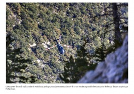 Le briefing terminé, l’équipe des ouvriers de l’ONF s’achemine vers les points de collecte. Place en hauteur, au milieu et dans le fond du combe de Fonfiole, ils attendent l’arrivée de l’ULM. On le voit suivre la crête, tourner au loin et se rapprocher rapidement. Les tours son cadencés au rythme de 4 minutes environ. L’épave de voiture, située long du sentier GR9, est la première à être évacuée par héliportage. Suivent une vingtaine de big-bag remplis de fils barbelé, boites et barils en metal, pneu et conteneurs en plastique. De l’autre coté de la falaise, les déchets sont déposés dans deux containers sous les yeux attentifs des partenaires de l’opération. Ludivine ROGLIANO, chargée de mission auprès de la Fondation du patrimoine, est ravie de l’issue de cette matinée : “ Le projet a été sélectionné par la commission du fond patrimoine naturel, pour plusieurs raisons. D’abord le caractère exceptionnel du site en lui-même, classé Natura 2000 ; ensuite pour l’envergure des déchets situés dans des endroits inaccessible et nécessitant l’évacuation par héliportage, ainsi que la valeur de cette opération en terme de sensibilisation du grand publique à la pollution.” Plus loin, Trentine Céline, Directrice de la Station du Mont Serein, assure la sécurité des lieux en informant les promeneurs de la fermeture exceptionnelle du sentier : “L’association de la Station du mont Serein a participé à l’opération en prêtant un soutien logistique, comme les postes radio, la fabrication d’élingues, et en mettant du personnel à disposition toute au long des opérations de nettoyage. Le but de notre association est en effet de préserver le site et accueillir le publique dans des bonnes conditions. Nous sommes très heureux de participer à ce nettoyage avec l’ONF “.