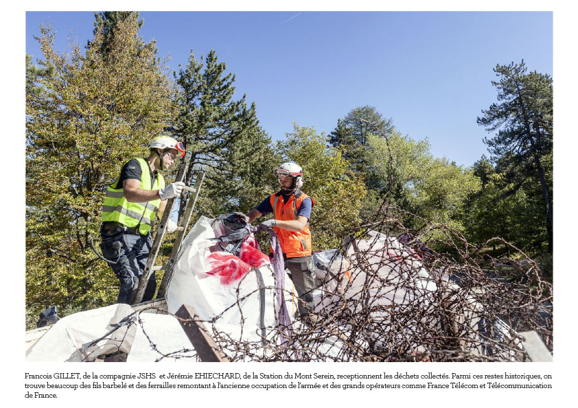 À l’aide d’un simple treuil, les ouvriers sont partis rechercher ces restes de ferrailles, la meuleuse à la main pour pouvoir le sectionner et les extraire des rochers qui les ont en partie ensevelies. Sur place, les déchets sont collectés dans des big bag. Les plus accessibles seront alors remonté par le treuil, après avoir libéré la trajectoire des gros rochers qui en empêcherait l’ascension. D’autres big-bag, bien trop loin du sommet pour pouvoir être extrait par treuil, seront alors évacuées par hélicoptère.